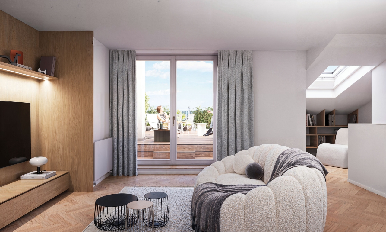 Byt č. 13 - 3+kk, 95 m2 + terasa 4 m2 + střešní terasa 28,5 m2